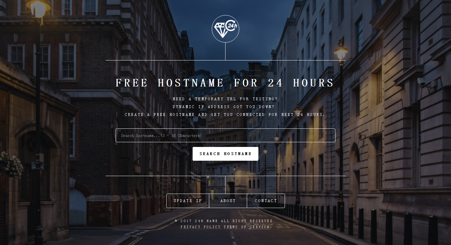 24H.Name是一款免费临时网址服务,让使用者建立暂时网址,且可依照需求对应到特定主机 IP 位址,透过全球动态 DNS 系统,你便能在几秒钟内透过网址连结到你的网站。