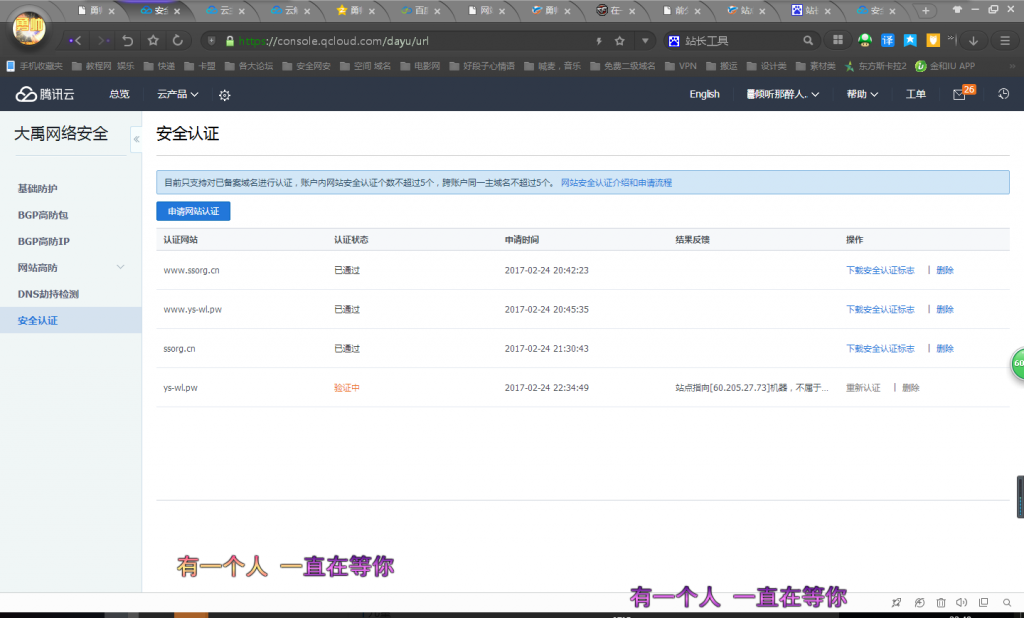 解析完事去大禹网络安全申请安全认证等审核就可以了,链接https://console.qcloud.com/dayu/url