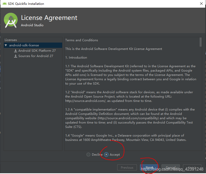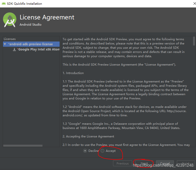 这里可以下载SDK和tools工具。Location表示SDK存储路径。