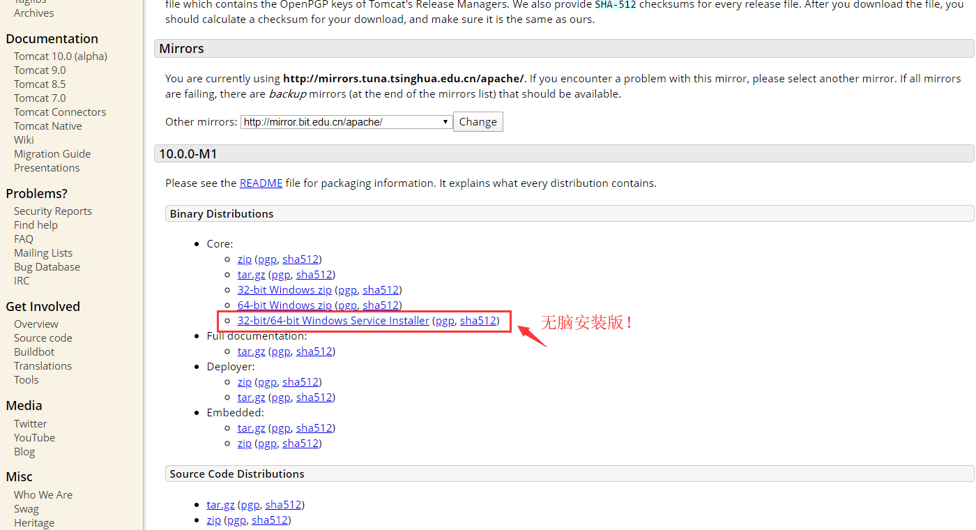 1. 官网下载安装程序: https://tomcat.apache.org/download-90.cgi