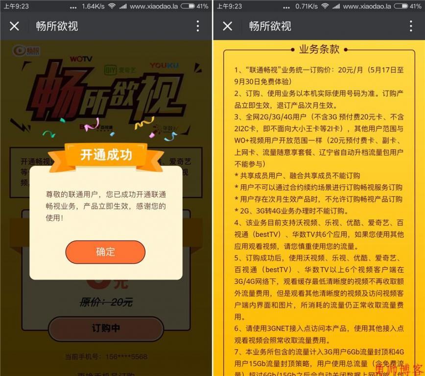 该业务目前支持沃视频、乐视、优酷、爱奇艺、百视通(bestTV)、华数TV共6个应用