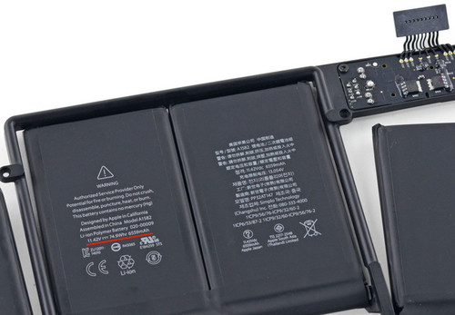 苹果13英寸Retina MacBook Pro内置电池容量74.9Wh(图片来自iFixit)